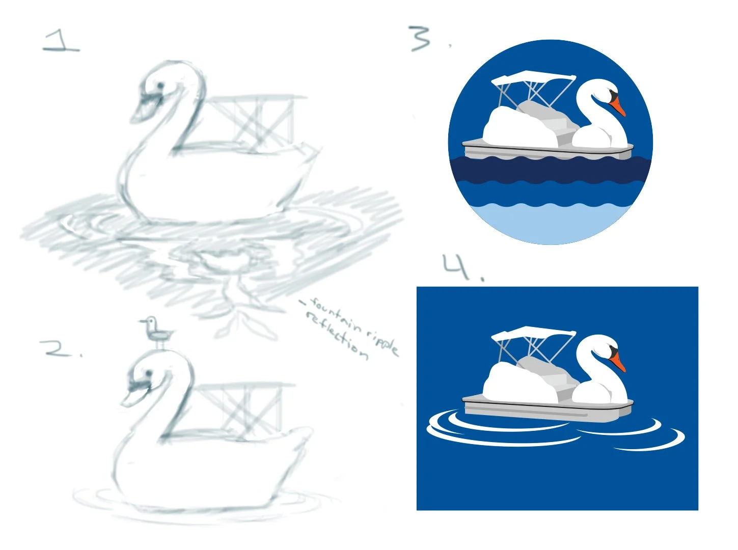 The client at the swan boat rentals wanted a fun and elegant redesign for their shirts as well. They provided the image on the left.